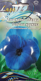 Компактный, обильно цветущий куст с крупными цветами, высотой 25–30 см. Цветы голубые с черным глазком, диаметром 6 см.